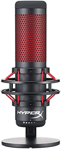 HyperX QuadCast – USB Condenser Gaming Microphone, for PC, PS4, PS5 and Mac, Anti-Vibration Shock Mount, Four Polar Patterns, Pop Filter, Gain Control, Podcasts, Twitch, YouTube, Discord, Red LED